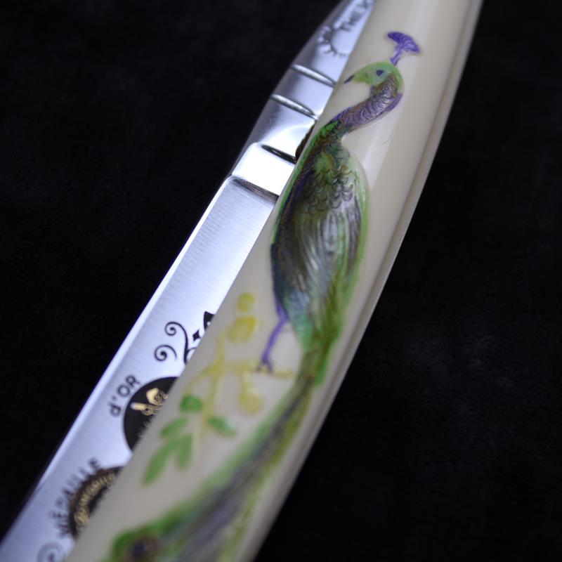 TI 7/8 Fox and Rooster Razor with Olivewood Scales