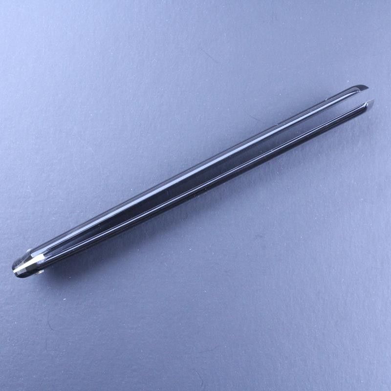 Polished black horn is a very elegant material for a straight razor handle and these replacement scales from Thiers Issard fit most 7/8 straight razors. Colouring of the handles can be from a very dense black to more translucent figuring with browns and creams. They are supplied fixed at the base but undrilled at the pivot so a perfect fit can be made. Supplied with pins and collars. N.B. As with all natural materials the colouring and patterning of these razor handles will vary from one to another.