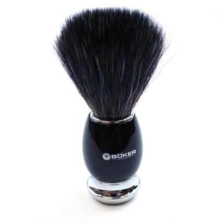 The black shaving brush has soft synthetic bristles and has a chrome effect base and trim. The knot size is approx. 20mm and the overall height approx. 105mm. This brush can be found on the site under reference A020006