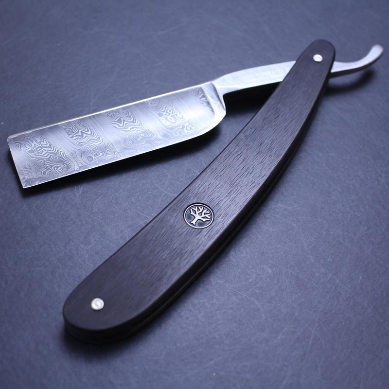 This 6/8 Damascus razor from H. Boker & Co. sports elegant and hard wearing ebony scales inset with the famous Boker tree symbol. The blade features the famed Damascus patterning to the stainless steel blade but each of these razors is unique and the images are of the actual razor for sale.