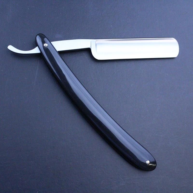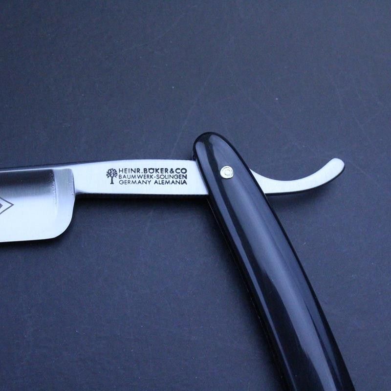 The Boker King Cutter 5/8 razor offers excellent value and is available in both black and white variants. This razor is the former variant with black composite scales and bearing the Boker tree logo on one side. The satin finish blade is etched with the King Cutter motif. This revised version now also has jimping on the upper and lower tang. A great beginner’s razor.