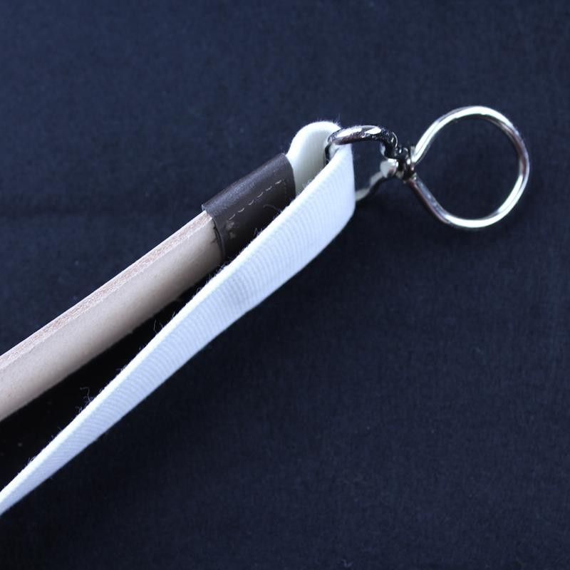 This linen backed hanging strop from Boker comprises a smooth high quality cowhide leather strop which is soft to the touch, backed with linen and complemented with nickel plated steel fittings. It is 45 mm wide with 300 mm of leather visible and an overall length of 460mm. Supplied with a 5ml tube of non-abrasive paste. This is essentially a leather balm to keep the leather supple and free from cracks. Only a small amount should be applied to the leather face of the strop. The other side of the strop may be used first to help clean and prepare the edge for subsequent stropping on the smooth leather face.