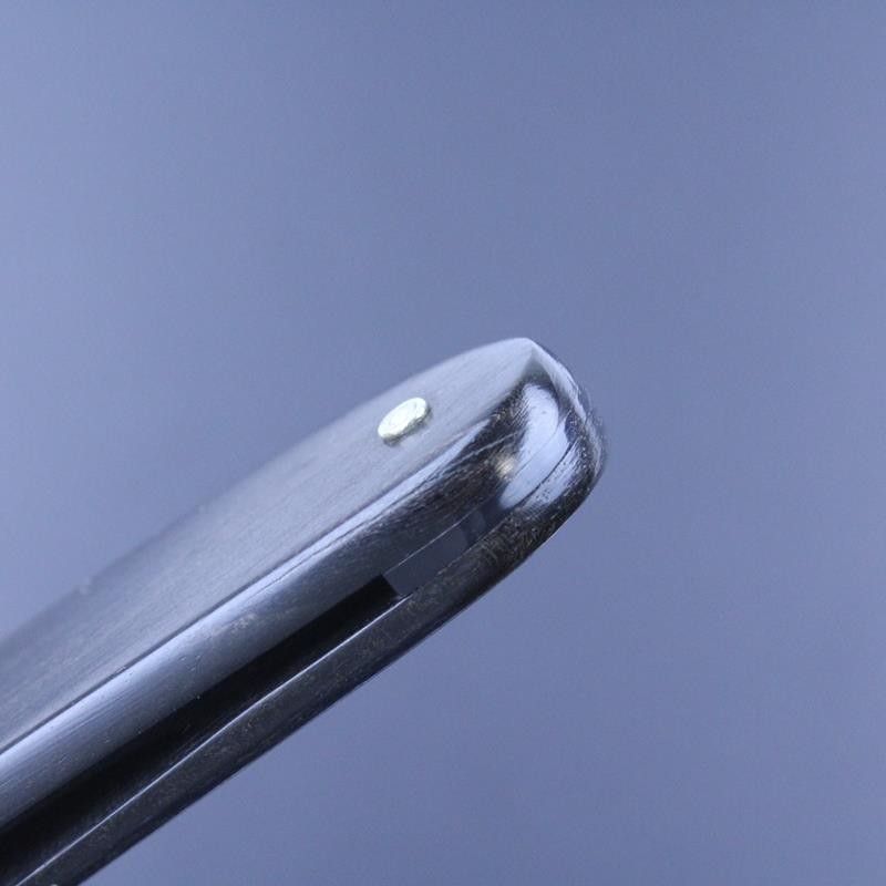 These are replacement straight razor handles or scales made by Dovo from ebony and are suitable for a 5/8 straight razor. The razor handles are fitted with a composite spacer. They are supplied with two pins (one is a spare in case you get it wrong first time), two washers (use or omit depending on the tang width) and two pin collars. As with all such natural products, the individual patterning and colouring of each set of razor handles will vary from one set to another. The ones I have are undrilled at the pivot end.