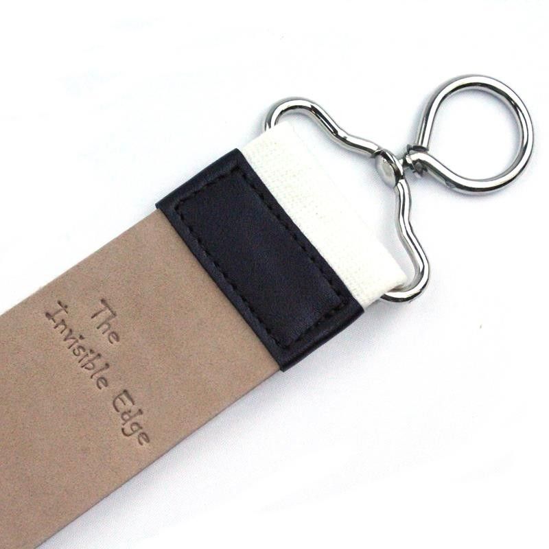 This is an economical but good quality hanging leather strop with a canvas backing for anyone wishing to use a traditional paste such as the Thiers Issard 260 paste. Made of a high quality leather, the strop is fitted with a swivel hook and grip handle. Although an entry level strop, these are good enough for us to have put our name on them. Its size is approx. 18″ (457 mm) x 1 3/4″ (45 mm), the length between the end pieces is approx. 12″ (304 mm).