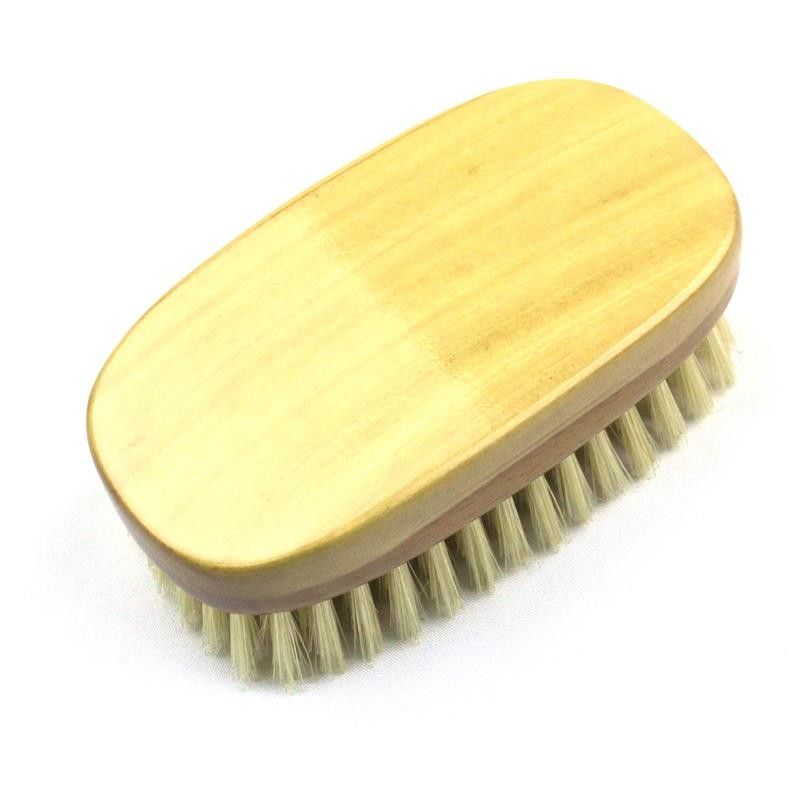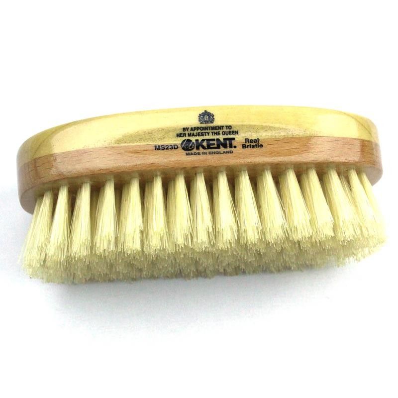 This elegant brush from Kent combines an attractive satinwood back with a beechwood base. The white bristle is described by Kent as soft but I would describe it as medium. The brush is essentially rectangular with rounded corners and an indent both sides to assist with grip. Approx. 115 mm long, 60 mm wide and approx. 43mm total height. A very nice hair brush for the money.