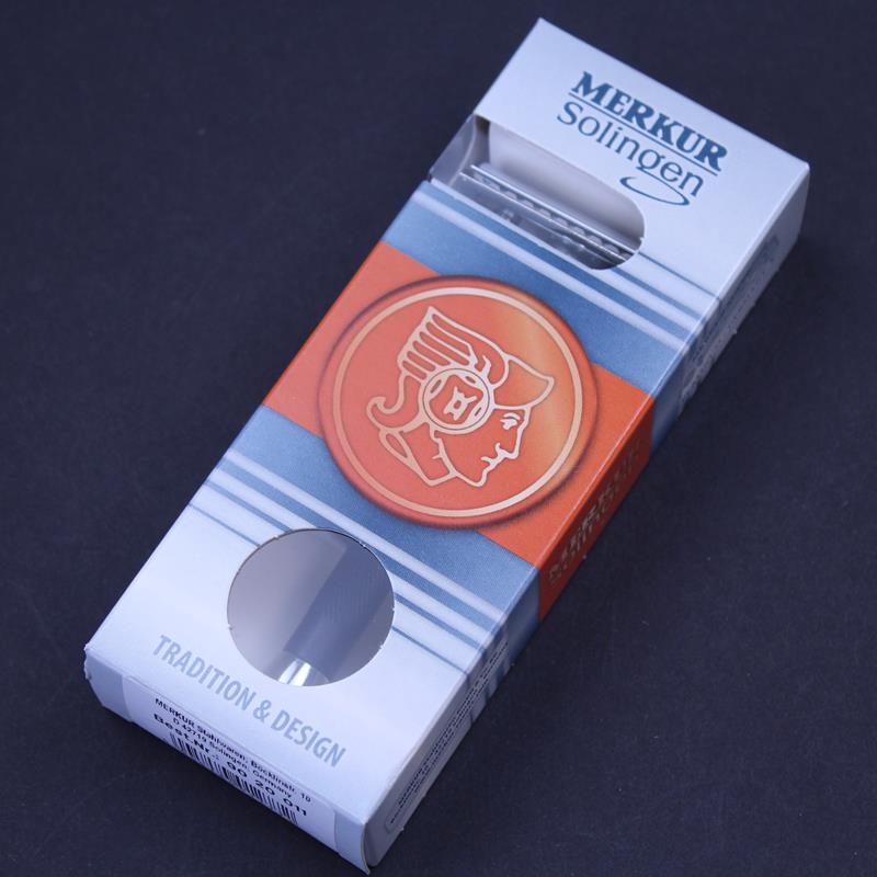 Supplied in a Merkur branded cardboard box with a single Merkur blade.