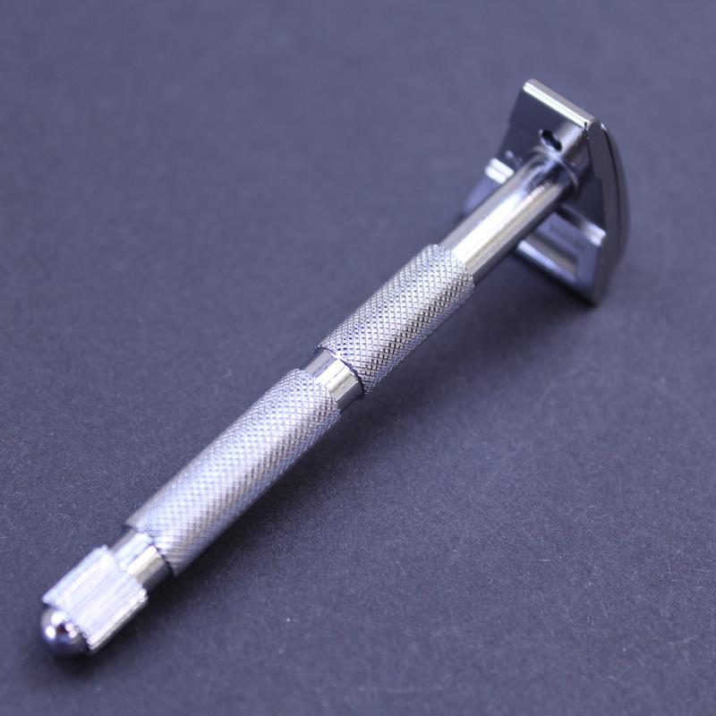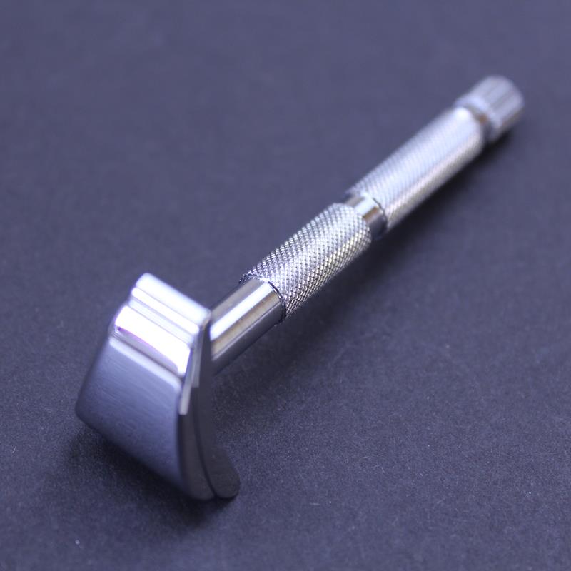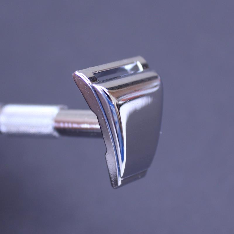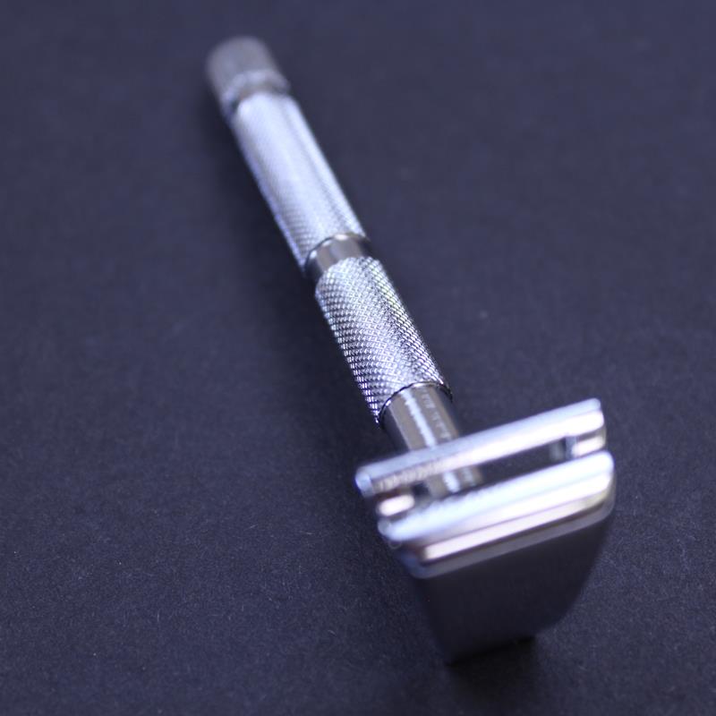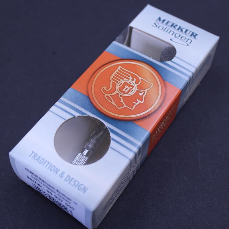 This razor from Merkur has a small tapered head to allow to you to cut clear and precise lines on your beard and moustache. The small and lightweight design makes it easy to use than a standard size razor. Finished in chrome plate and with a patterned handle for additional grip. This small three piece takes special small blades with a cutting edge just 15 mm long. Supplied with one blade.