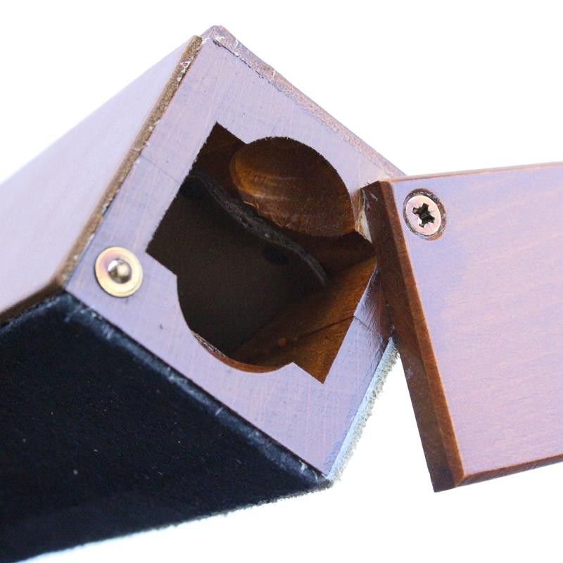 The Strop-It 4 Good is a large four sided straight razor strop with a difference. The bottom of the strop swivels to reveal a cushioned storage place for your straight razor. The strop has two napped leather beds and two tanned smooth leather faces. The beds are approx. 295 x 48 mm while the overall length is 425 mm. This is a great choice if seeking a large strop for use with stropping pastes.
