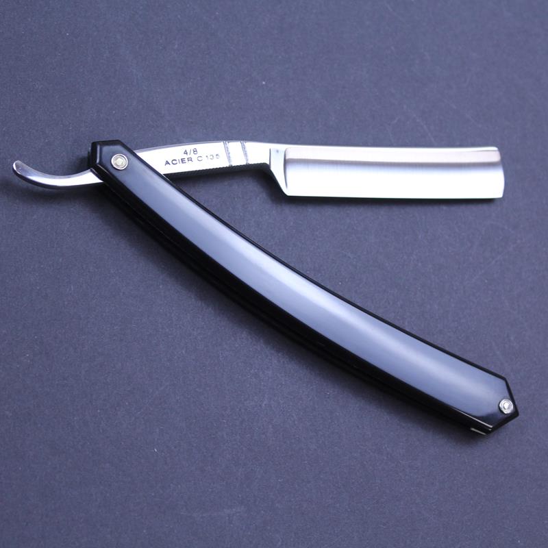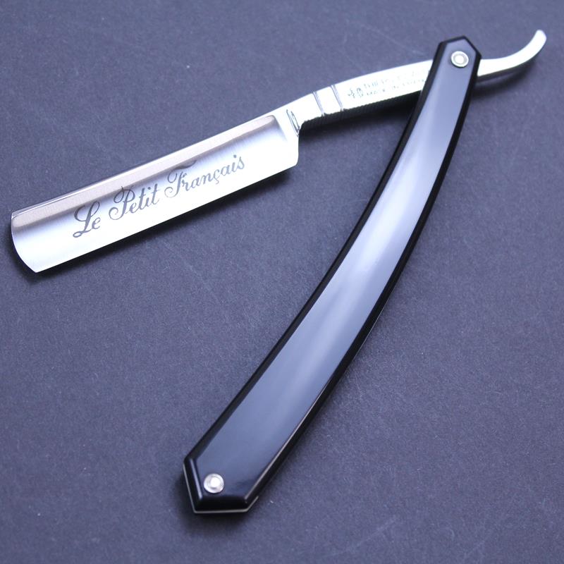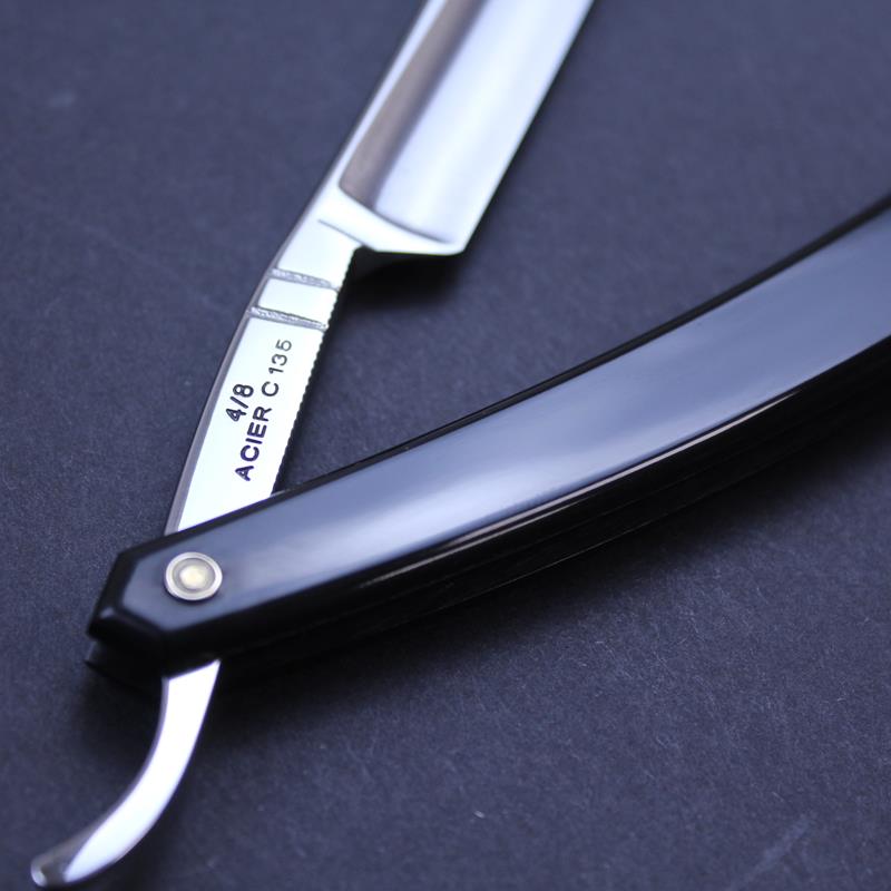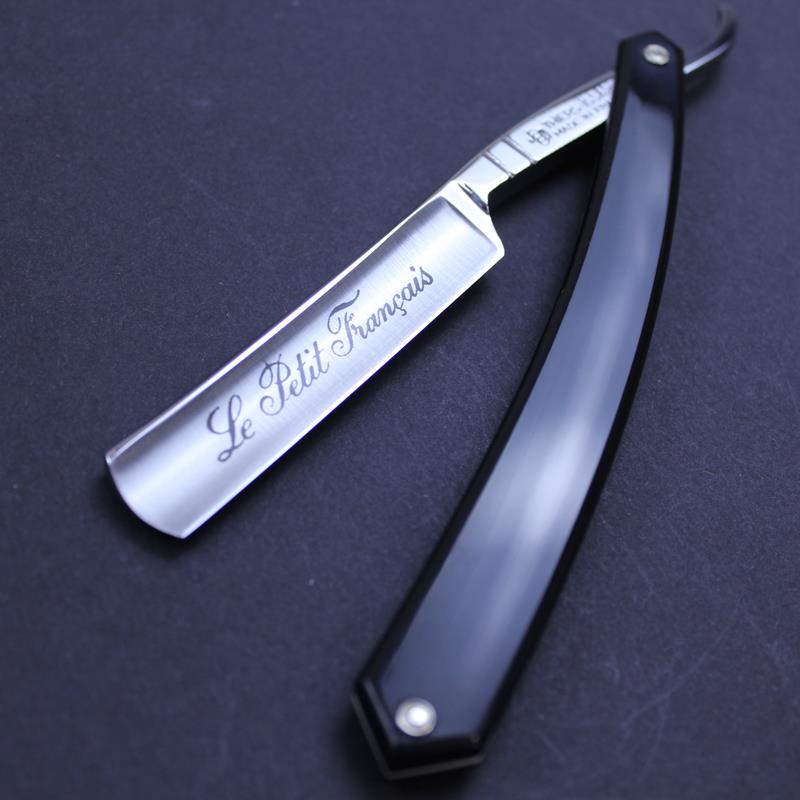 This Thiers Issard Le Petit Francais Razor has a 4/8 carbon steel satin finished hollow ground blade, a plain spine and jimping to the lower tang. It has attractive black composite scales. The Le Petit Francais razor can be used for a full face shave or purely for detailing facial hair so ideal if you might wish to do both.
