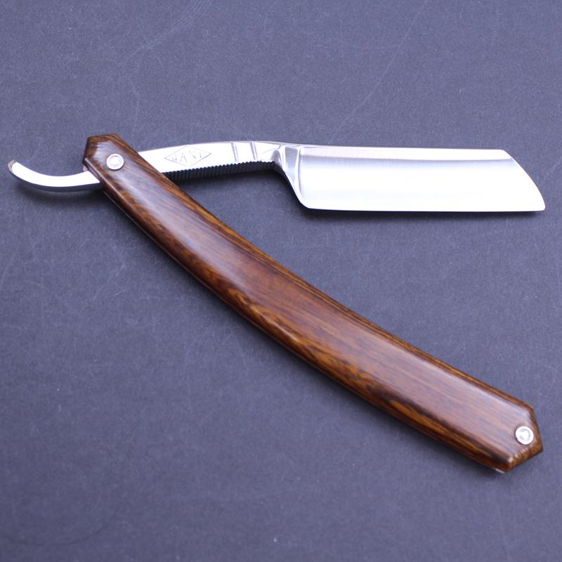 We are stocking this Desert Ironwood Transatlantique razor elsewhere in a 7/8 hook nose version. Here we have a smaller 5/8 version of that beautiful razor. It has the same stunning desert ironwood scales, and a plain spine. The blade is satin finished to both sides and jimping to the lower tang. This version of the razor has a French nose. The wood used for the Desert Ironwood Transatlantique razor has become expensive but the wonderful graining of this wood gives a luxurious look and feel to any razor.