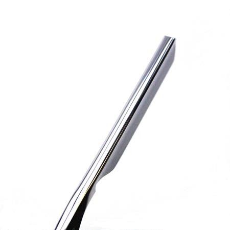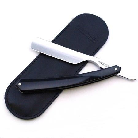 This is an excellent choice for a beginner’s straight razor. Ideal for heavier beards due to its slightly stiffer blade. This Thiers Issard 11/16 razor has a “Grelot” form so it has a rounded thumb notch for ease of use. It carries simple black plastic scales and has an unmarked satin finish blade. Supplied in a simple pouch. The razor should really be thought of as a 5/8 and indeed the tang is marked 5/8.