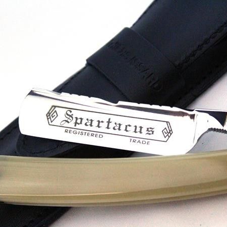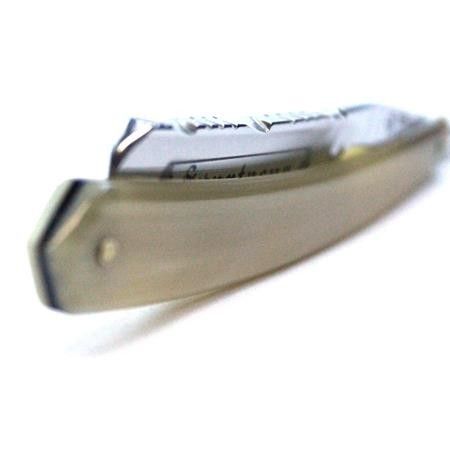 This is a fine quality and elegant 5/8 razor from Thiers Issard. It has highly polished blonde horn scales, while the blade has a hand worked spine bearing the historic Wheatfield (or Wheat) design. The blade carries the Spartacus black mark and is mirror polished. Supplied in a luxury Barenia leather wallet (colour may vary).