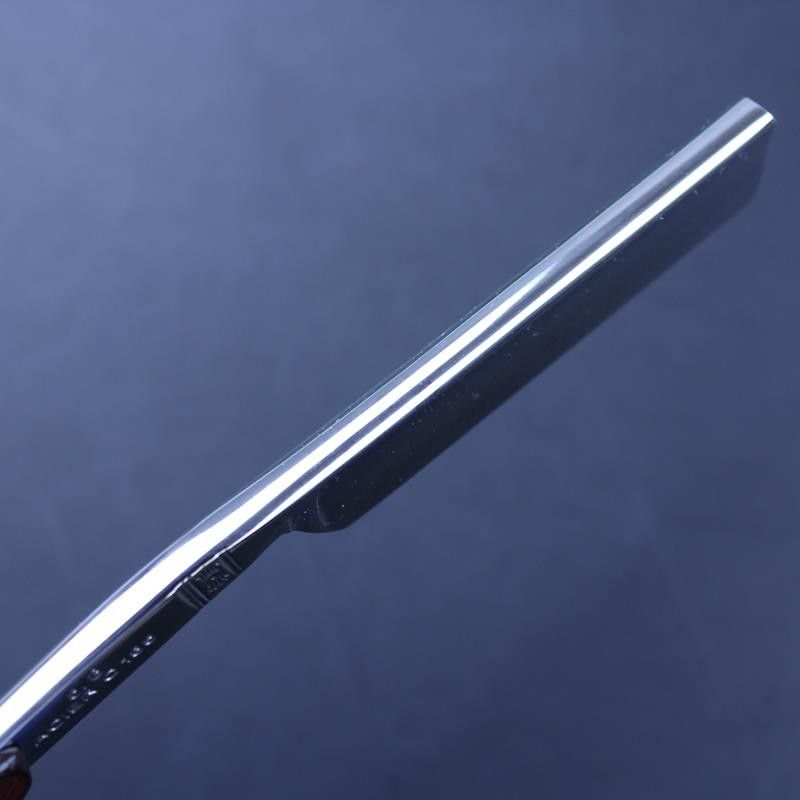 New for us, this Thiers Issard razor combines the “Evide Sonnant Extra” marking on a satin polished blade with gorgeous red stamina scales to provide a very elegant razor. Has anti-slip jimping to the underside of the tang. Supplied in a simple black sheep leather pouch. N.B. As with all natural materials the colouring and patterning will vary from one razor to another.
