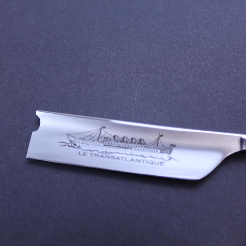 Thiers Issard registered the “Le Transatlantique” trademark in 1914, in honor of Jeanne Thiers, the owner’s sister, who adored ships and travelling. Today the beautiful sailing ship transatlantic trademark can be seen on the side of Thiers Issard straight razors along with Jeanne’s English name, Jane, which appears on the reverse of the tang.