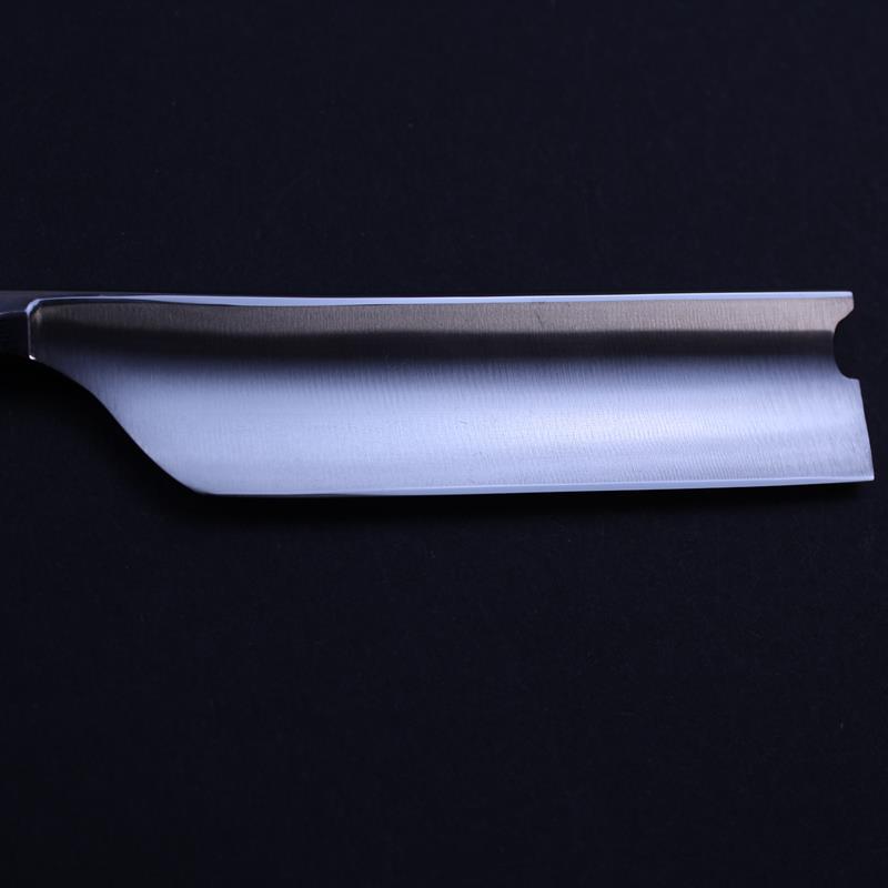 This 7/8 Thiers Issard razor is a departure for us with the use of the Transatlantique mark. It has beautiful desert ironwood scales, a plain spine and a hook nose, all in all a very stylish razor.