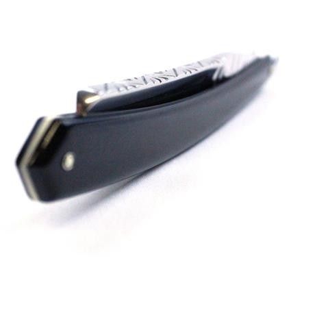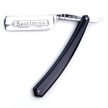 This very elegant 6/8 razor from Thiers Issard has black horn scales and also has a hand worked spine in the historic Diamond (Special Triangle) design. The round point blade is mirror finished to both sides and bears the Spartacus black mark – altogether a stunning razor.