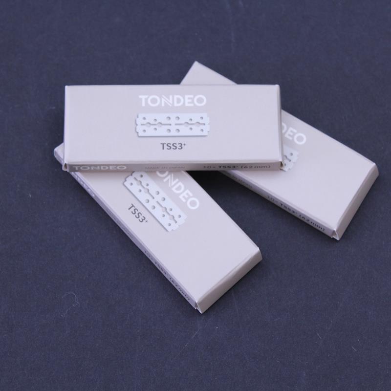 Tondeo blades are now made in Japan by Feather. They are made from stainless steel and have a chrome-nitrate seal together with a teflon layer which ensures the blade glides across the skin. Suitable for all DOVO shavettes and a good replacement for DOVO’s own shavette blades which unfortunately are now discontinued. These shavette blades are widely used by barbers and hair salons. Three packs each of 10 blades. Each blade is 65mm long.