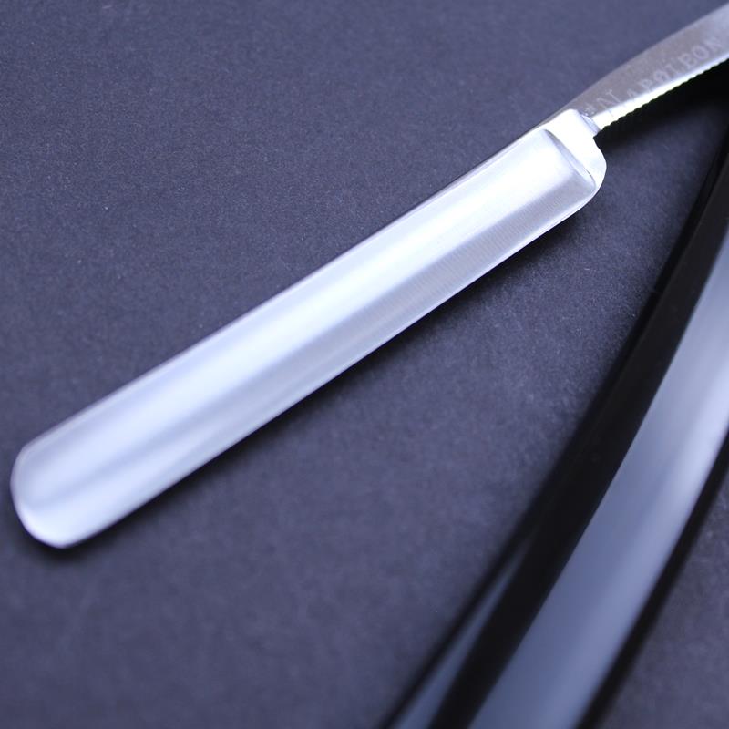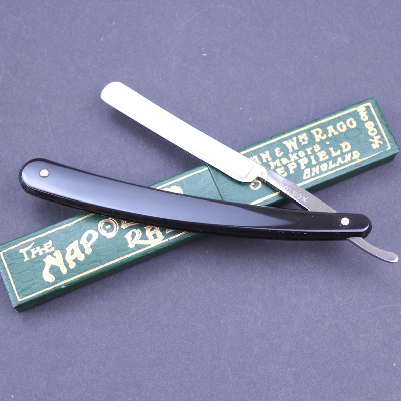 This vintage Ragg NOS Napoleon razor is in very good condition with a narrow 2/8 carbon steel blade. It is ideal for hair thinning or for detailing around a beard or moustache. It comes in its original box as shown. The tang of each is marked with Ragg’s “NAPOLEON” brand but the font varies.