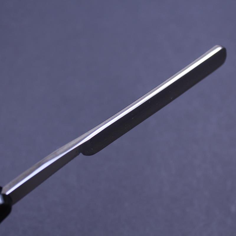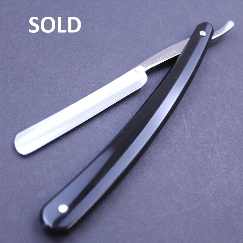 The razor has a thick grind, a round point and jimping to the upper and lower tang. While the razor came to me in very good condition, the scales on this particular one were damaged, so I have replaced them with new DOVO black composite scales. If you are interested in a small Sheffield razor then this would be a great buy.