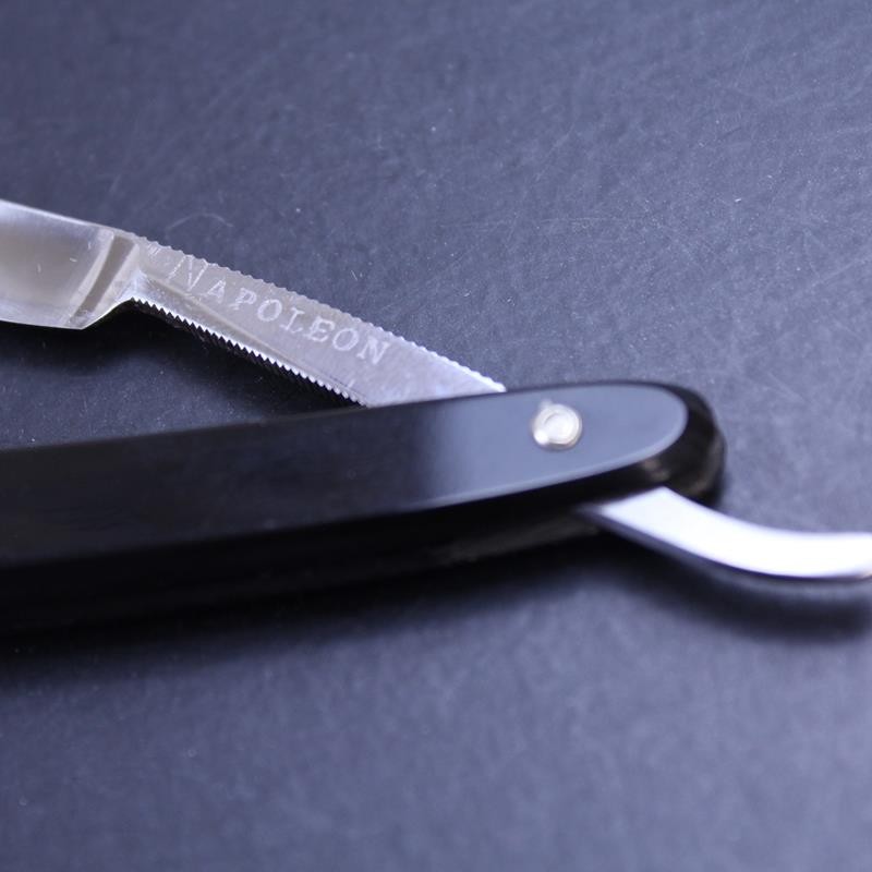 This vintage Ragg NOS Napoleon razor is in very good condition with a narrow 2/8 carbon steel blade. It is ideal for hair thinning or for detailing around a beard or moustache. It comes in its original box as shown. We have a number of these and so the images are not necessarily of the razor supplied. The tang of each is marked with Ragg’s “NAPOLEON” brand but the font varies.