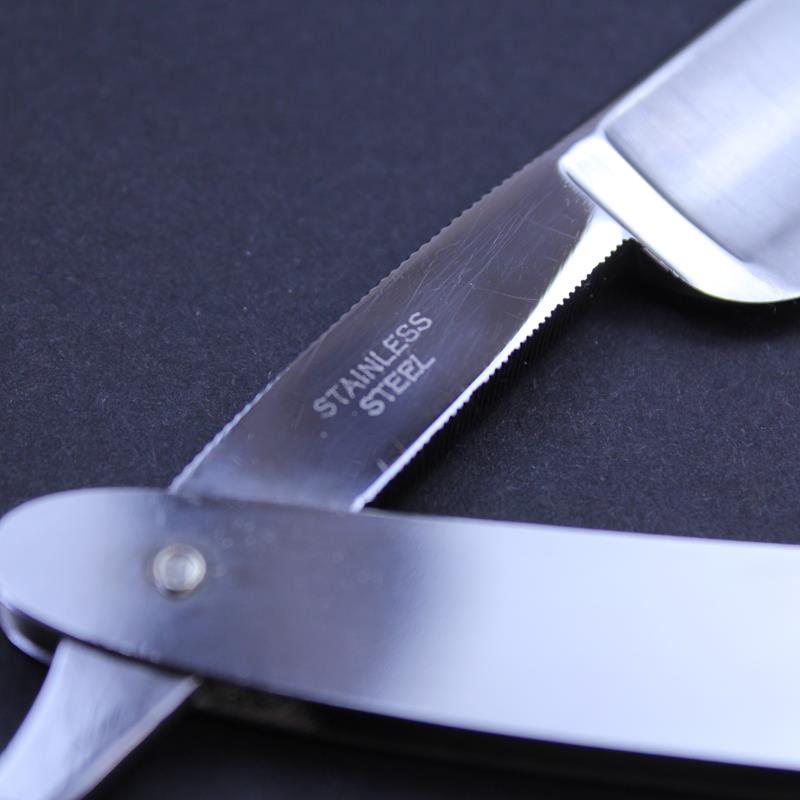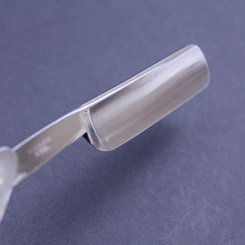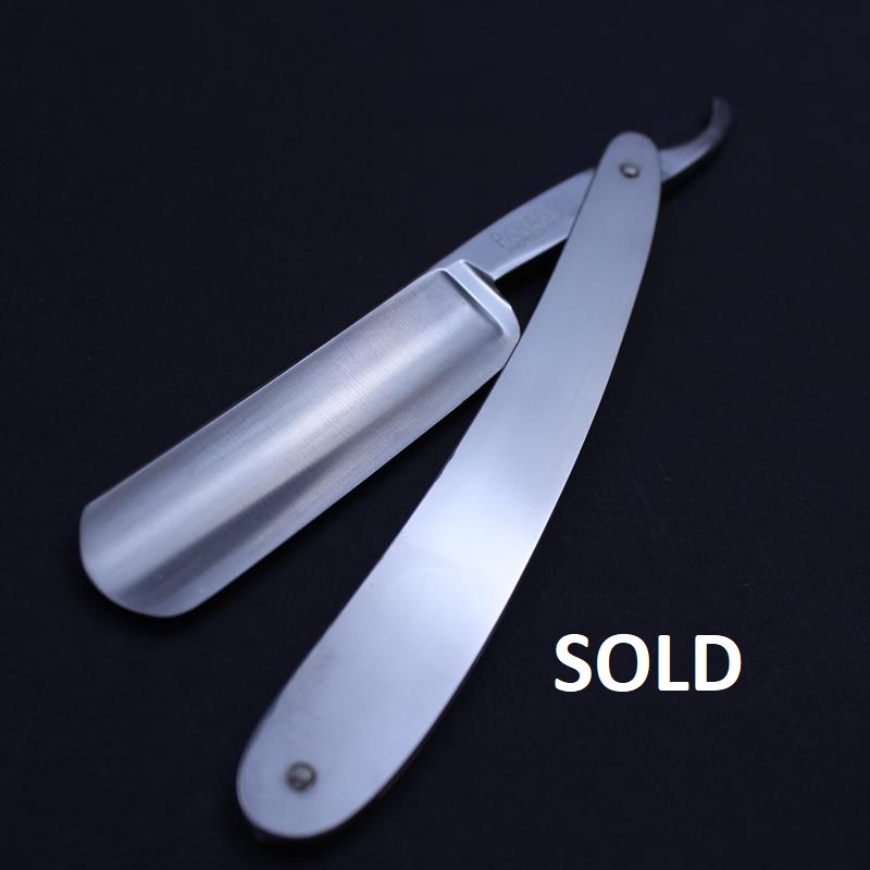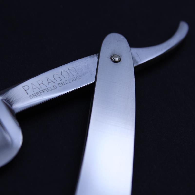 This vintage John & William Ragg razor has a 6/8 stainless steel blade with a hollow grind and a plain spine. It bears the words “PARAGON Sheffield England” on one side of the tang and “Stainless Steel” on the other. It has a round point and stainless steel scales, with jimping to the lower and upper tang. The spine of this vintage stainless Ragg 6/8 Paragon razor has a couple of very small forging faults on the spine but these are hard to see and even harder to photograph. Otherwise it is in excellent condition.